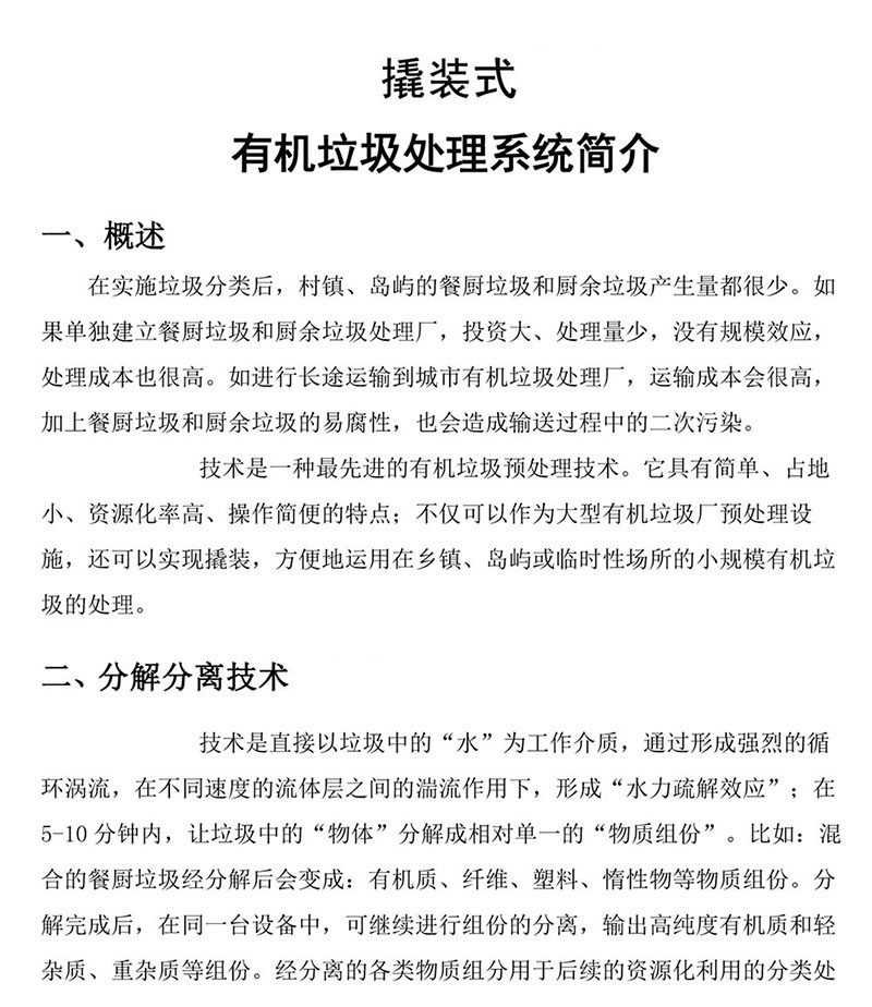 撬裝式有機(jī)垃圾處理系統(tǒng)